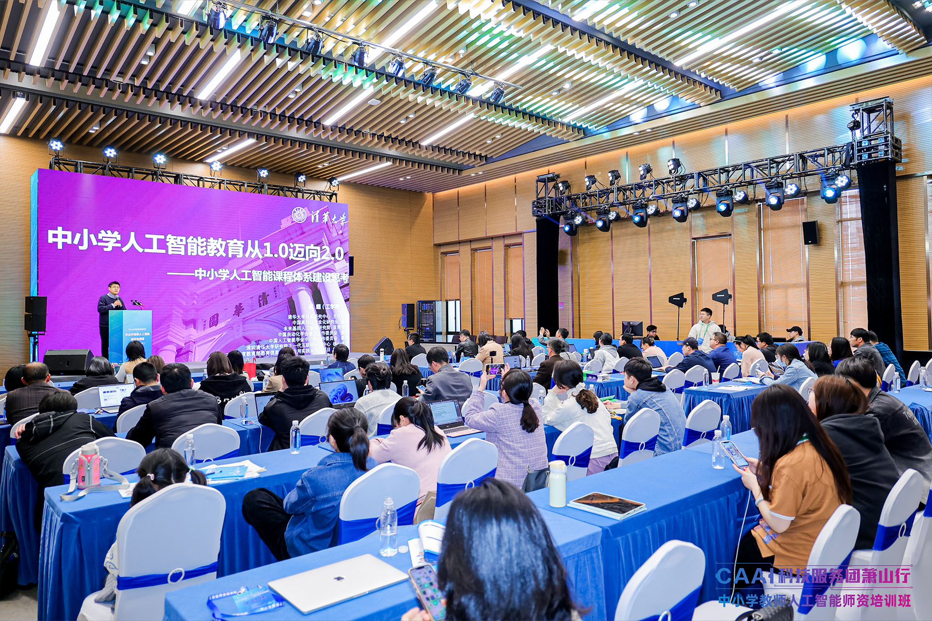 2023年4月9日,作为人工智能大模型技术高峰论坛同期活动的“中小学教师人工智能师资培训班”在萧山机器人小镇成功举办,CAAI科技服务团专家走进杭州萧山,为学员面对面讲解知识、传授经验,帮助学员快速掌握人工智能知识体系和青少年人工智能教育方法。